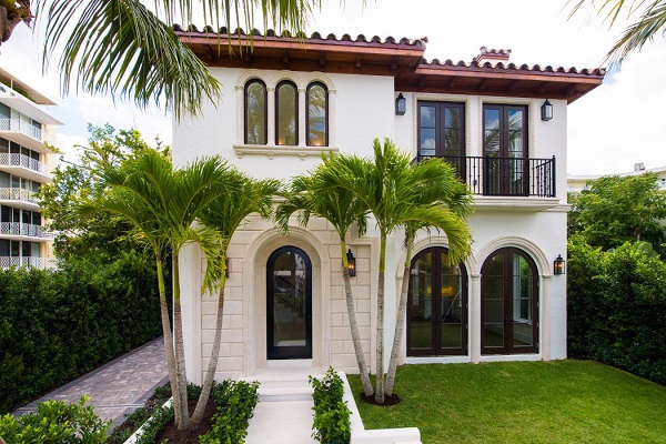 Bahagian luar rumah Mediterranean selalunya menampilkan bumbung berjubin merah, serta batu-bata atau lapisan stuko yang dicat putih.