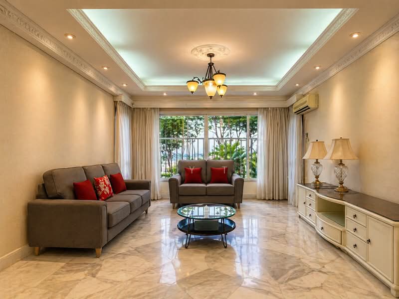 Spanning approximately 1,500 sq ft, this middle-floor unit enjoys a pleasant sea view and comes fully renovated with elegant marble flooring throughout. The property is fully furnished, making it move-in ready for homeowners or ideal for investment.