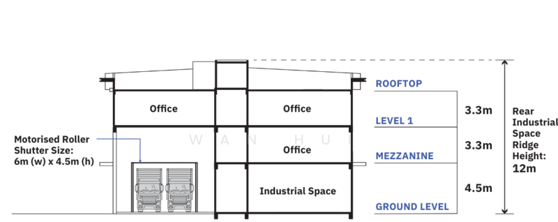 Motorized front shutter: 6m (W) × 4.5m (H)