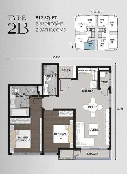 Type 2B: 917sqft (2 bedroom)