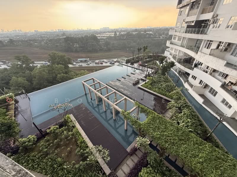 • Large balcony facing pool + open skyline view