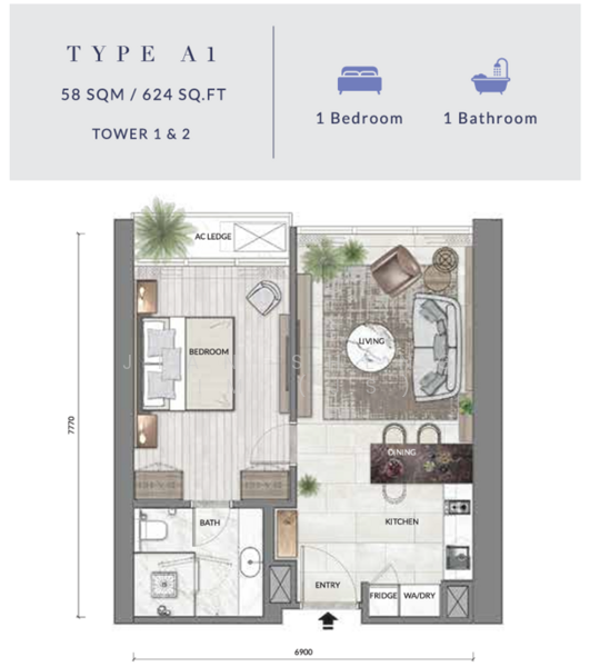 • Build-up size: 624sqft