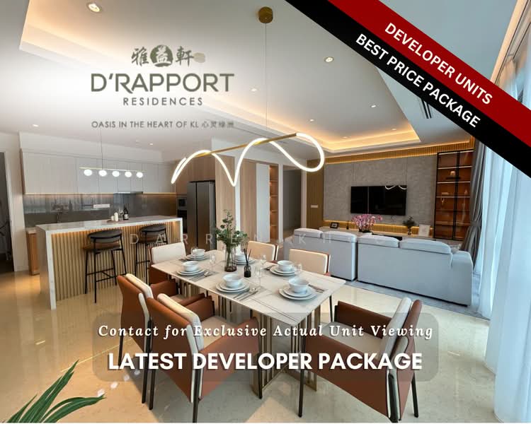 D'Rapport Residences is a luxurious leasehold condominium development offering a resort-style living experience in the prestigious Ampang Hilir enclave, also known as Embassy Row, in Kuala Lumpur. Developed by Acmar International and its partners, this project is designed for those seeking tranquility and opulence in the heart of the city. The development is set on a 9.12-acre plot and features a remarkable 25-acre landscaped lake park exclusively for residents. D'Rapport Residences consists of five 38-storey towers named The Wellington, The Swinton, The Auston, The Kennington, and The Winston, housing a total of 1,099 condominium units. The design prioritizes spacious and modern living, with only six units per floor, each serviced by high-speed lifts to ensure privacy and convenience. Built-up areas for the units range from 1,108 sq ft to 2,238 sq ft. Some available layouts include: 2,238 sq ft 1,903 sq ft 1,613 sq ft 1,108 sq ft Residents have access to an extensive array of over 50 facilities spread across more than 280,000 sq ft, promoting a complete lifestyle experience. Key amenities include:Swimming and Lap Pools A glass-encased Gymnasium and Sauna Tennis, Squash, and Basketball Courts Golf Simulators and an Indoor Putting Range Jacuzzi and BBQ Area A Sky Bar, Sky Pond, and Party Deck with panoramic city views An 11,000 sqft landscaped forest and jogging track D'Rapport Residences boasts excellent connectivity, situated just minutes from Kuala Lumpur City Centre. It is easily accessible via major highways including the Ampang-Kuala Lumpur Elevated Highway (AKLEH), DUKE Expressway, and the Middle Ring Road 2 (MRR2). For public transport users, the Jelatek LRT station is approximately a 15-minute walk away. A host of shopping and retail options are located nearby, including:Great Eastern Mall (600m away) Ampang Point Shopping Centre Suria KLCC and Pavilion Kuala Lumpur are a short drive away The residence is surrounded by reputable educational institutions, making it ideal for families. Notable schools include:Sayfol International School (1 km away) International School of Kuala Lumpur (ISKL) Mutiara International Grammar School Top-tier medical facilities are within easy reach, providing peace of mind for residents. These include:Gleneagles Kuala Lumpur (just 1 minute away/350m) KPJ Ampang Puteri Specialist Hospital Prince Court Medical Centre HSC Medical Centre D'Rapport Residences is a project by Acmar International Group, in collaboration with China Railway Engineering Corporation (M) Sdn Bhd (CREC) and Bismarck Construction & Engineering Sdn Bhd. Acmar Group is a diversified mid-sized real estate developer known for several projects in Malaysia.