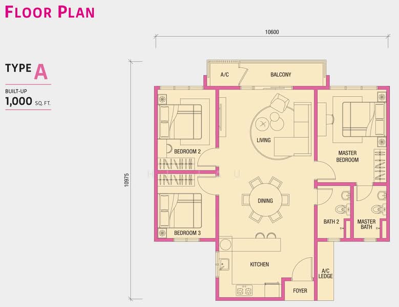 ~ 3 bedrooms & 2 bathrooms with Balcony.