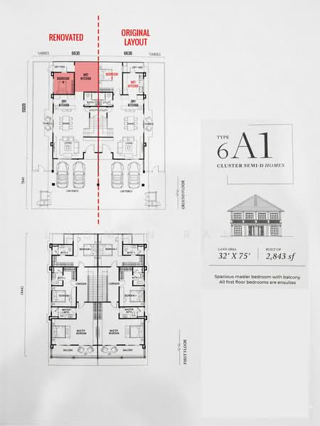 * Land Area : 32x75 (2,400sf) extra land 10'