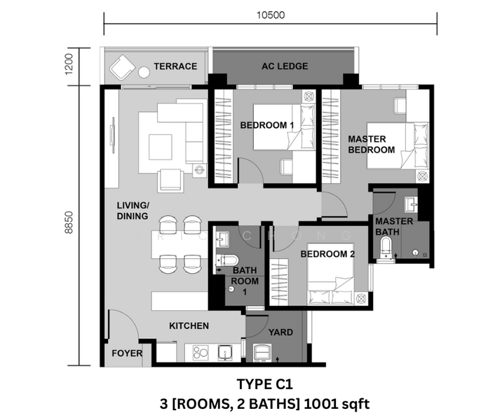 •3-Bedroom ~1,000 sqft