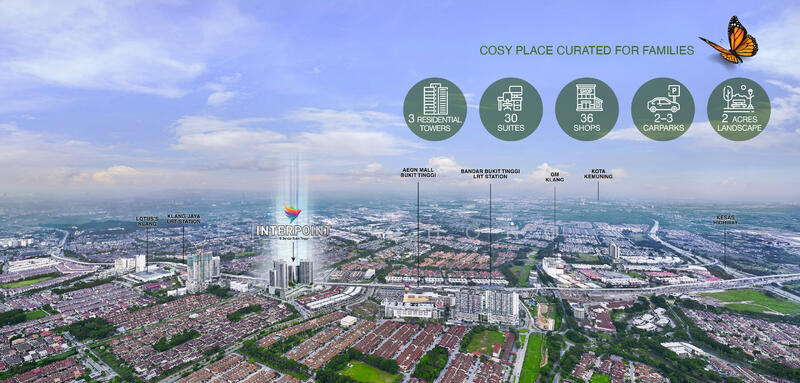 Interpoint, a serviced residence along Jalan Batu Nilam 21 in Bandar Bukit Tinggi 2, 41200 Klang, Selangor, occupies one of Klang’s most desirable addresses. This freehold development, envisioned by Crest Builder Holdings Bhd, reflects the developer’s strong reputation for seamlessly integrating residential and commercial spaces into a cohesive lifestyle environment. Various units fill Interpoint, including one, two, three, and four-bedroom layouts. Designs allow flexibility to match multiple lifestyle preferences, with areas adaptable to studies or work-from-home spaces. With seven podium floors below the residences, retail offerings support a lifestyle of convenience. Daily essentials and dining options contribute to a self-contained living experience within a contemporary setting. Interpoint, strategically positioned in Klang, sits close to key urban conveniences like AEON Bukit Tinggi, Lotus’s Klang, and other essential amenities. A standout feature includes 70,000 sq ft retail space across two levels, offering grocers, eateries, and daily necessities within reach. The development merges modern living with natural surroundings, creating a well-rounded, appealing environment. This combination of urban vibrancy and serene design supports lifestyle comfort and investment value. Interpoint caters to residents seeking ease, accessibility, and lasting value in one address. Its thoughtfully planned layout and mixed-use features provide a complete living solution. With retail integration, transit connectivity, and community-centric design, Interpoint delivers a residence that aligns with convenience, quality, and long-term potential. It offers an attractive option for homebuyers and investors seeking a modern, self-sufficient lifestyle in Klang’s evolving cityscape. Interpoint benefits from excellent connectivity, with multiple LRT3 stations located nearby like Bukit Tinggi (Station 19), Batu Nilam (Station 20), Taman Selatan (Station 21), Sri Andalas (Station 22), and Johan Setia (Station 26). This integrated rail network allows smooth travel across Klang and into the greater Klang Valley, supporting efficient commuting and urban mobility. Beyond public transport, major highways offer further access. These include the South Klang Valley Expressway (SKVE), Shah Alam Expressway (KESAS), Federal Highway, and West Coast Expressway (WCE), all of which easily connect residents to key destinations. A vibrant neighbourhood surrounds Interpoint, bringing everyday convenience within reach. Lifestyle destinations such as AEON Bukit Tinggi Shopping Centre and Tesco Extra Bukit Tinggi are just moments away. The combination of strategic transit options and essential amenities shapes a well-connected, dynamic environment that enhances daily living and long-term value. A careful approach to design places Interpoint as a complete development focused on comfort and community. Facilities extend from wellness-focused amenities to social gathering areas, curated to improve day-to-day living. Residents benefit from: A 70,000 sq ft retail podium offering convenient access to essential services and amenities. A multi-level car park with a speed ramp ensures efficient and seamless access for residents. Unit designs feature flexible layouts, allowing adaptation for study or workspace to suit individual needs. The living environment fosters relaxation, connection, and well-being. Thoughtfully placed greenery softens the urban setting, striking a balance between tranquillity and functionality. Together, these elements create a space that feels both grounded and serene. It’s an ideal setting for modern living where daily comfort, social engagement, and natural calm coexist within a well-designed residential community. Families find convenience with several educational institutions nearby, including: SJK (C) Hin Hua Hin Hua High School Collinz International School The area serves a variety of cuisines and dining spots, such as: PIMs Thai Food Sushi Akami Sushi Mentai Health services lie within close reach, including: Hospital Tengku Ampuan Rahimah Klinik Kesihatan Klang Klinik Araa Daily grocery needs are easily met at nearby spots such as: AEON Bukit Tinggi Shopping Centre Tesco Bukit Tinggi Happy Family Mini Mart Interpoint stands at Jalan Batu Nilam 21, Bandar Bukit Tinggi 2, Klang. The development’s design speaks of modern aesthetics, combining urban architecture with natural elements. An estimated height of 11 storeys defines the structure, marked by a blend of elegant styling and functional green integration. Interpoint Service residence development Klang A comprehensive mix of residential units catering to an urban lifestyle with efficient planning One - to four-bedroom units ranging from 593 to 1,270 sq ft, with modern layouts, open kitchens, and well-lit living areas adaptable to evolving resident needs. Crest Builder Holdings Bhd brings the Interpoint concept to life through a thoughtful blend of design and purpose. With deep expertise in harmonising residential and commercial elements, the developer shapes environments where comfort and functionality coexist. Interpoint reflects this philosophy and addresses accommodating living, working, and community connections within a cohesive setting. Known for consistently choosing locations with strong accessibility and everyday convenience, Crest Builder Holdings Bhd sets a standard for integrated, liveable developments in the Klang Valley. Interpoint showcases this commitment, offering a lifestyle hub where ease of movement, well-designed spaces, and essential amenities align. This approach promotes a well-balanced, fulfilling living experience, catering to individual needs and communal engagement, all within a thoughtfully connected urban framework. The Greens @ Subang West Alam Sanjung @ Subang West Avenue Crest The surrounding area hosts other notable developments contributing to the growth and lifestyle landscape. These include: Bandar Botanic Bayuem