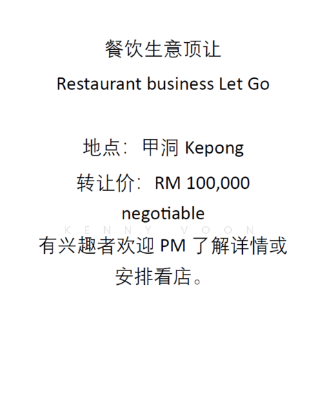 甲洞餐饮生意顶让, Restaurant business for sale, Kepong