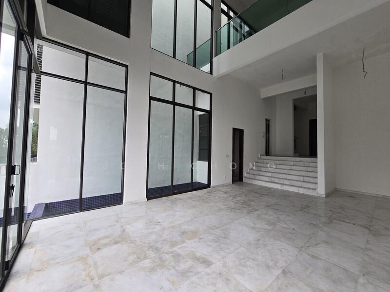 Huge living hall with water feature and balcony