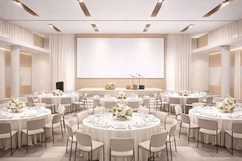 ▸ Facilities: Reception area, restaurant, banquet hall, meeting rooms, spa, lift access, housekeeping space, and management office