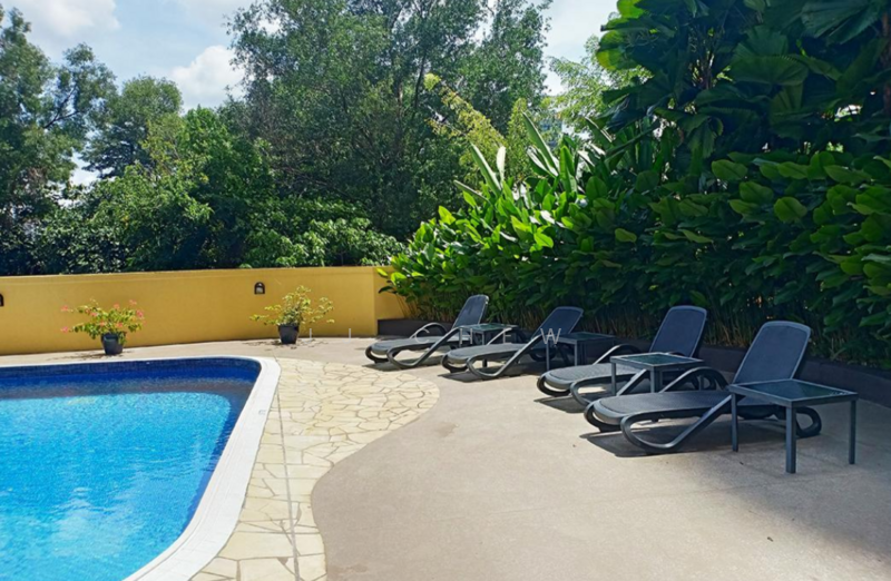 Facilities: putting green, tennis court, squash court, half basketball court, spa pool