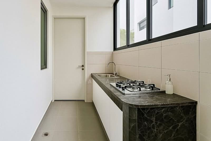 Extended kitchen with sink, glass roof, and full kitchen cabinet (RM25,000).