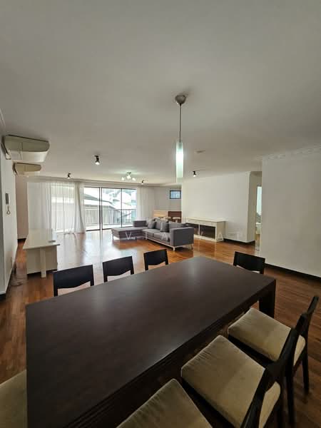 Three bedrooms ( with AC ) plus one utility room, one study room, one large living room with 4 bathrooms (3+2)