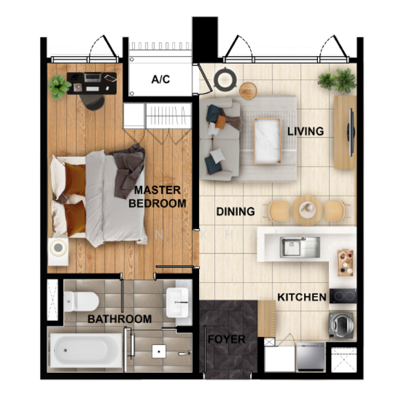 b. 711sqft, 1+1bedroom 1bath, RM4800 - RM5900 Fully Furnished