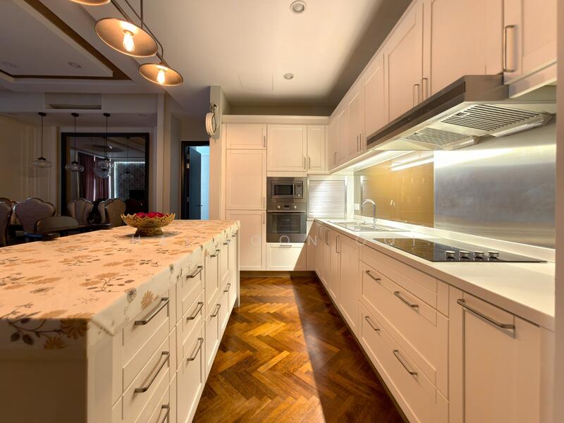 High-quality woodwork, elegant wall patterns, and custom furniture create a refined, timeless atmosphere—rarely found in typical condominium units.