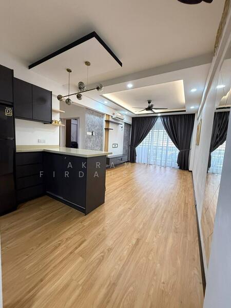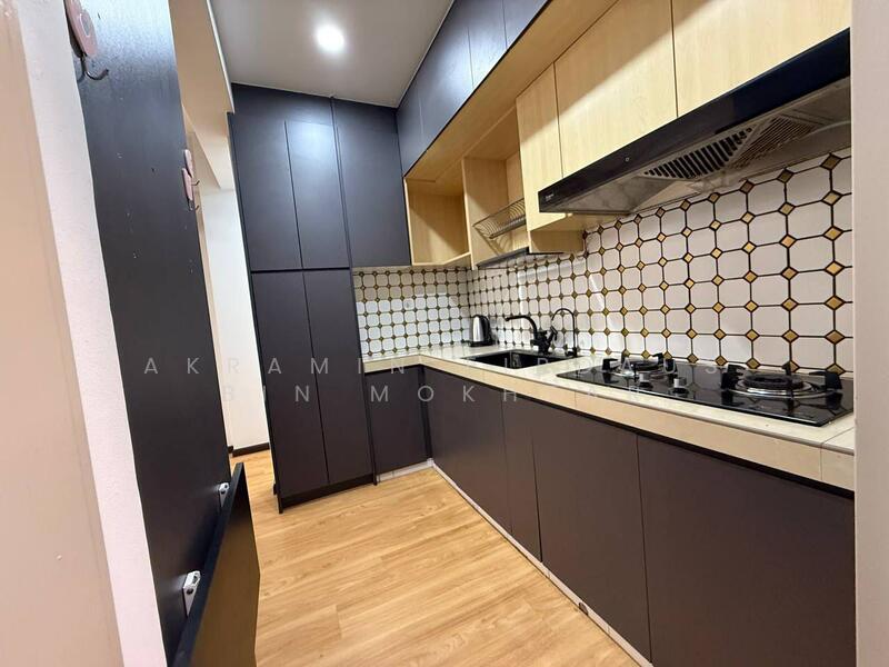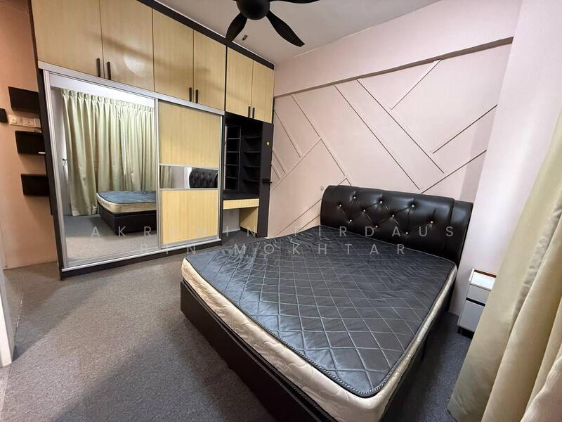2 unit airconds, washing mashine, fridge, 1 water heater, kitchen cabinet, build in wardrobe,open wardrobe, island table + chair, fan & lights, ceiling hanging cloth, swing, tv cabinet, shoe cabinet, spc flooring, 1 queen bed.