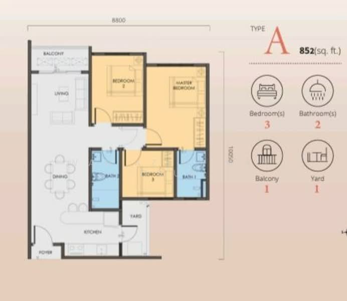 Size 852 sqft