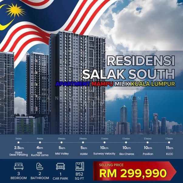 Residensi Salak South is a new leasehold condominium development located in the mature neighbourhood of Salak South, Kuala Lumpur. As part of the Residensi Wilayah (RUMAWIP) initiative, this project is designed to provide affordable, modern living spaces with a host of lifestyle facilities. Developed by BEAKS Development Sdn Bhd, the residence is slated for completion in 2028 and offers a practical and well-connected urban home.This development sits on a 5.18-acre plot and consists of two blocks housing a total of approximately 1,295 units. The standardised unit layout offers a practical built-up area of 851 sq ft, featuring 3 bedrooms, 2 bathrooms, a balcony, and a yard space, making it ideal for families and individuals alike. 851 sq ft 3 Bedrooms, 2 Bathrooms Leasehold 1295 2Residents of Residensi Salak South will have access to a wide array of recreational and wellness facilities, thoughtfully located on Level 8. These amenities cater to a modern lifestyle, providing spaces for relaxation, fitness, and community gatherings.Infinity Swimming Pool & Kid's Water Play PoolGymnasium & Yoga StudioHalf Basketball CourtKids Playground with Sprint TrackMultipurpose Hall / Recreational Badminton CourtBBQ Terrace & Edible GardenReading Room & Games RoomSkydeck (Level 35/37)3-Tier SecurityStrategically located in Salak South, the residence boasts excellent connectivity to major highways and public transportation, ensuring seamless travel to various parts of Kuala Lumpur and beyond. Easy access to the KL-Seremban Highway, Sungai Besi Highway (Besraya), and MEX Highway. Proximity to KTM Salak Selatan (3.2km) and MRT Kuchai Lama (3.5km) stations provides convenient rail access across the city. The Terminal Bersepadu Selatan (TBS) is also just 5.1km away.Plaza Salak Park (Giant) - 2.3kmNSK Kuchai - 3.8kmMid Valley Megamall - 6.5kmSunway Velocity - 6.9kmFamilies will appreciate the proximity to several educational institutions.SJK (C) Salak South - 1.8kmSJK(C) Confucian - 3.6kmSK Salak South - 4.7kmAccess to medical care is convenient with several facilities nearby.KMI Taman Desa Medical Centre - 5.1kmHUKM Specialist Centre - 6.5km
