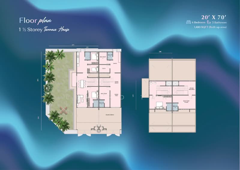 The 1.5 storey terrace house includes 2 master bedrooms, one positioned on the ground floor for the convenience of elderly parents, and another upstairs for enhanced privacy.