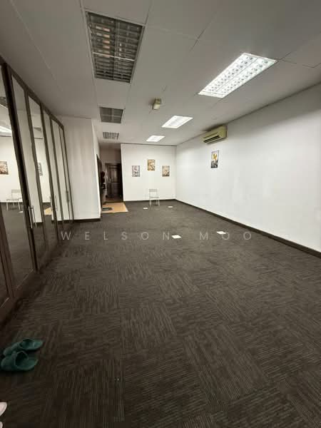 Spacious office unit with a built-up area of 1600sqft, featuring 2 small rooms, 1 meeting room, 1 pantry, 1 prayer room, and 3 toilets. Includes a filing cabinet for your convenience.
