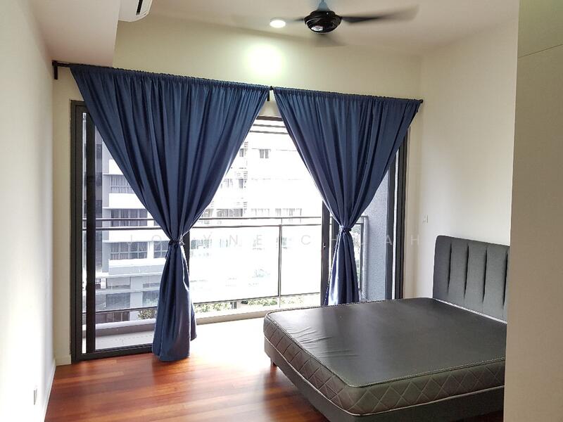 Furnishes: Fully furnished c/w queen-sized bed, kitchen cabinet, water heater, air-cond, ligthings, ceiling fans, curtain, washing machine, fridge.
