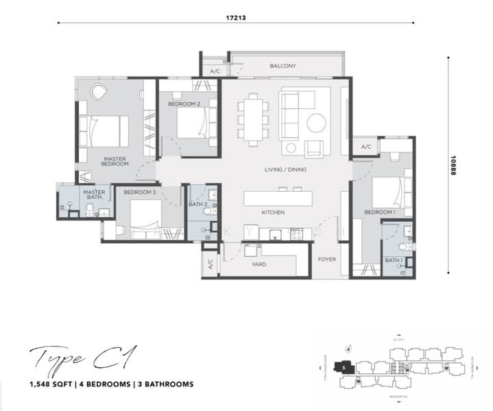-> 1,548sf (4 bedrooms)