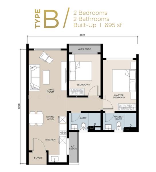 = Type B 695 square feet