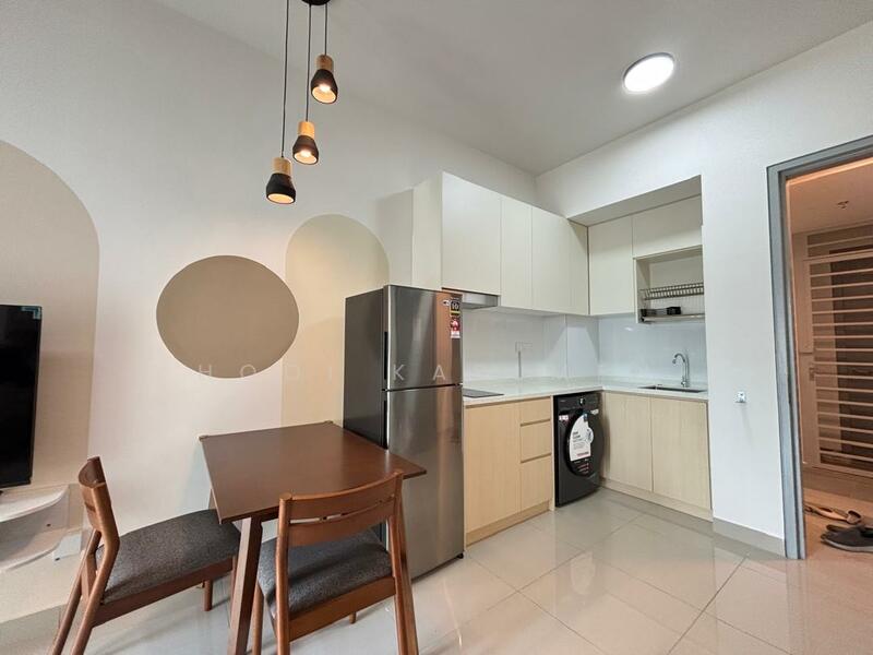 ( King size bed , 2in1 washing machine , Smart TV , Smart lock , fan , aircon , cooker , dining table , kitchen cabinet )
