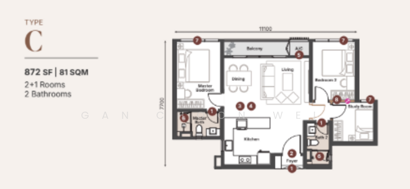 Type C: 872 sqft