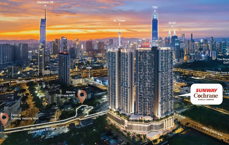 60m covered link to Cochrane MRT (TRX in 1 stop) | Walk to Sunway Velocity Mall