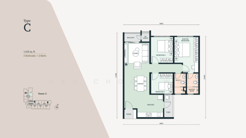Type C: 1033 sqft