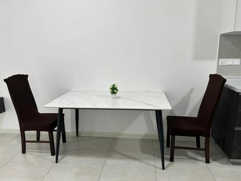 Fully furnished with Kitchen Cabinet, Stove+Hob, Fridge, washer, Sofa, Cabinet, Dining set, Queen Bed set, Water Heater, Airconds