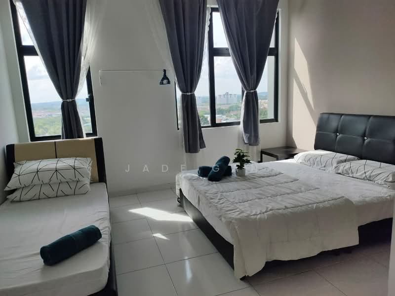 The Sky Executive Suites, also known as The Sky, is located along Jalan Indah 15 in Bukit Indah, Johor Bahru, Johor. This freehold serviced residence consists of two 25-storey towers which houses 364 units. It features executive suites and penthouse units with built-up areas ranging from 751 – 2,778 sq ft. Facilities at The Sky include swimming pool with wading pool, barbecue area, covered parking, gymnasium, Jacuzzi, tennis court, sauna and nursery. This gated and guarded property has a 24-hour security system with patrol guards. There are plenty of amenities nearby. Schools in the vicinity include Taman Bukit Indah Primary and Secondary Schools, Dato’ Usman Awang National School and Seri Perling 2 Secondary School. Taman Rekreasi Bukit Indah, shop lots, eateries, banks and clinics are within walking distance. AEON shopping centre, TESCO and Giant hypermarkets are just a short distance away. Jalan Indah 15 is linked to Persiaran Indah and Jalan Persisiran Perling 2 with easy access to Bukit Indah Highway and Second Link Expressway to Singapore. Buses and taxis are also available in the area.