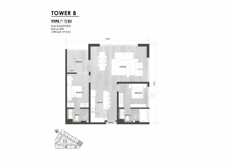 ✓ Build up 1,090 sqft – with Terrace