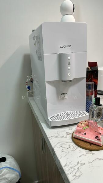 Fully furnished with kitchen top, Cuckoo purifier water dispenser, kitchen cabinets, electrical hood and hob, fridge, washing machine and dryer, air conditioning and water heaters