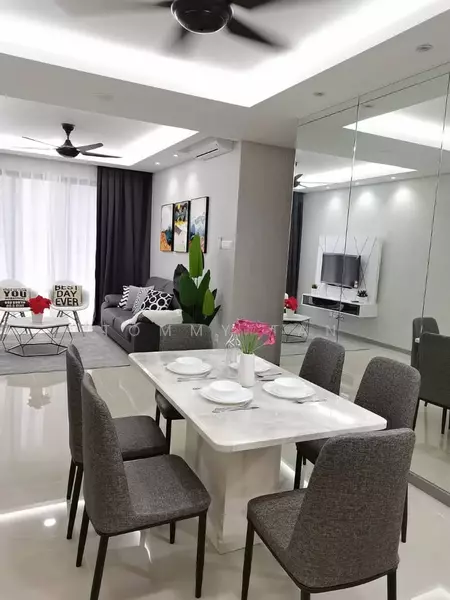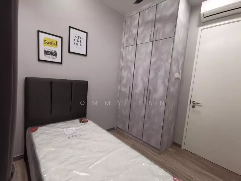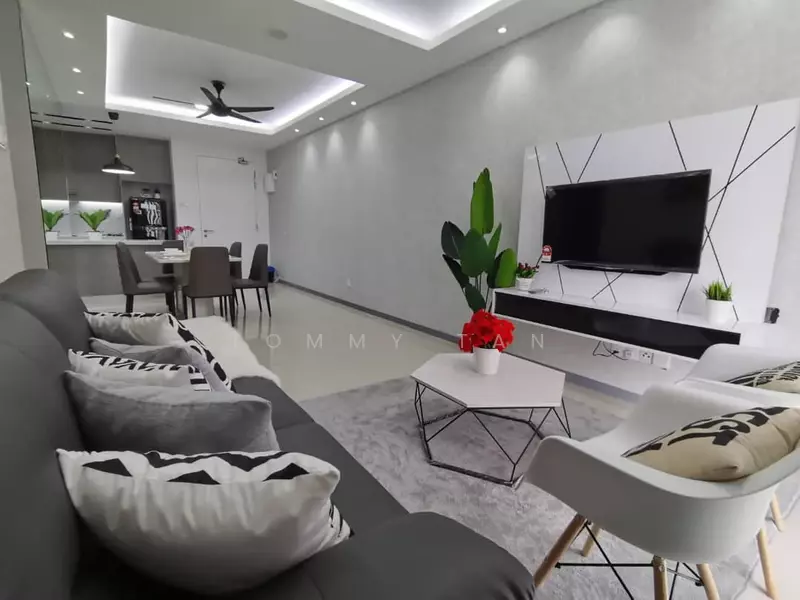 -fully furnished with kitchen cabinet, table top with island, kitchen hood & hob, 4 aircond, built in water heater, fridge, washing machine, TV, TV cabinet, coffee table, dining set, sofa, bedroom set, fan, lighting, door grille, curtain, wardrobe.