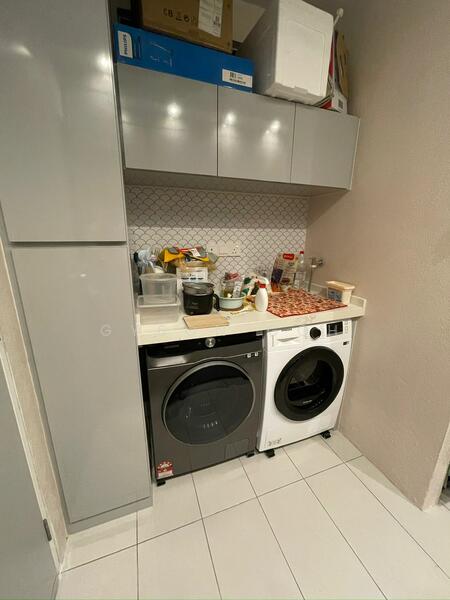 Features built-in wooden cabinetry, a cooking stove, an air fryer, a refrigerator, a washing machine, built in microwave and oven and a COWAY water filtration system.