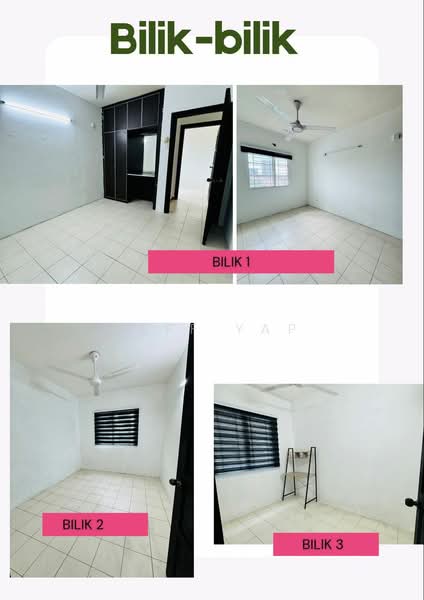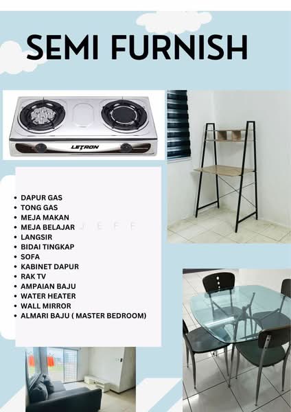 - Partially furnished(Grill/kipas/lampu/sofa/Wardrobe/meja belajar/kitchen cabinet/tv cabinet/Water Heater/langsir&bidai/meja makan/tong gas,gas memasak)