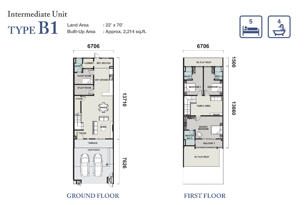 Built-up Area: 2,214 sq ft – 2,289 sq ft