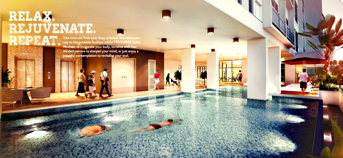 Trion888 SoHos are unique in that they come with condominium-like facilities such as an Infinity Sky Pool, gymnasium, function room, barbecue area, changing rooms, laundry areas, Management Office and Sky Gardens located in the residential/work areas on the higher floors.
