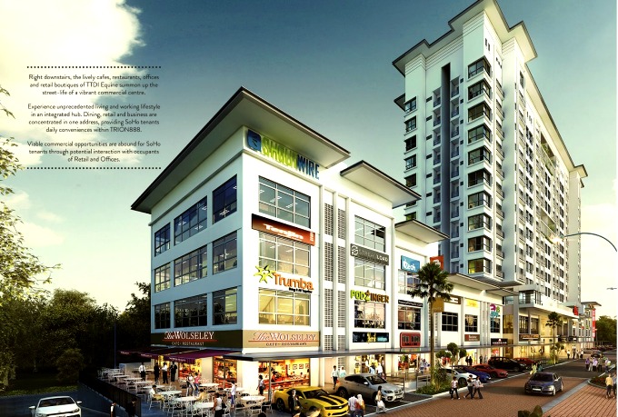 The Trion888 block, which is “hugged” by the TTDI Dualis 2, 2 ½ and 4 ½ storey Semi-D shop offices, is due for completion in 2017. Prices for the SoHos which are all 450sq ft, start from RM349,000 before discount.