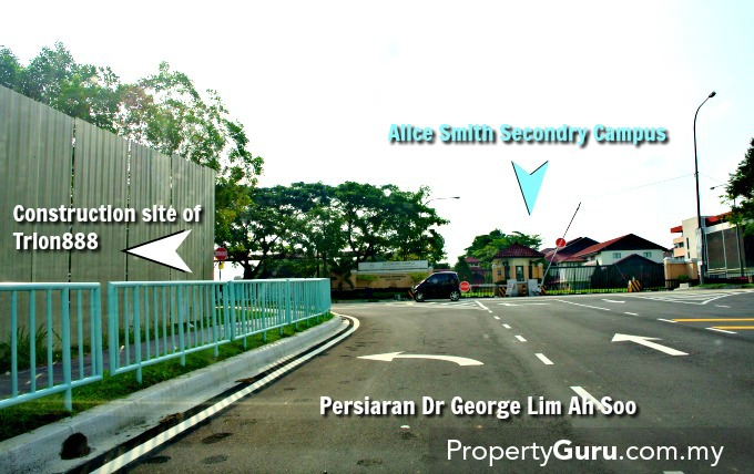 Trion888, Equine Park stands directly in front of the Alice Smith International School on Jalan Equine and turning down to Persiaran Dr George Lim Ah Soo. The Naza TTDI project including the TTDI Dualis shop offices “envelops” and stands shoulder-to-shoulder to Wisma Penyayang, barely 20 metres across the road of Jalan Equine from the school. In fact, Trion888 can be seen rising out of the ground next to Wisma Penyayang in the picture below.