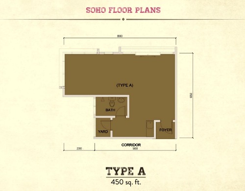 Trion888 SoHos sport three Floor Plans: Types A and B (“squarish” 450 sq ft) and Type C (“rectangle” 450 sq ft). All three have yards. Do have a look at the floor plans.