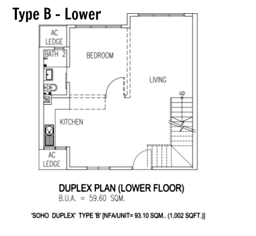 - Type B Duplex 2R+2B (choice of with or without balcony) 1002sq ft−1100sq ft