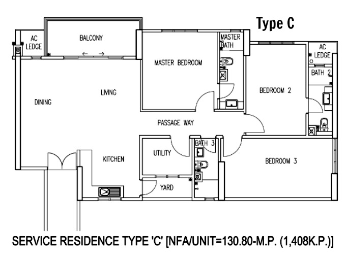 - Type C: 3R+3B 1376sq ft to 1534sq ft (with balcony)