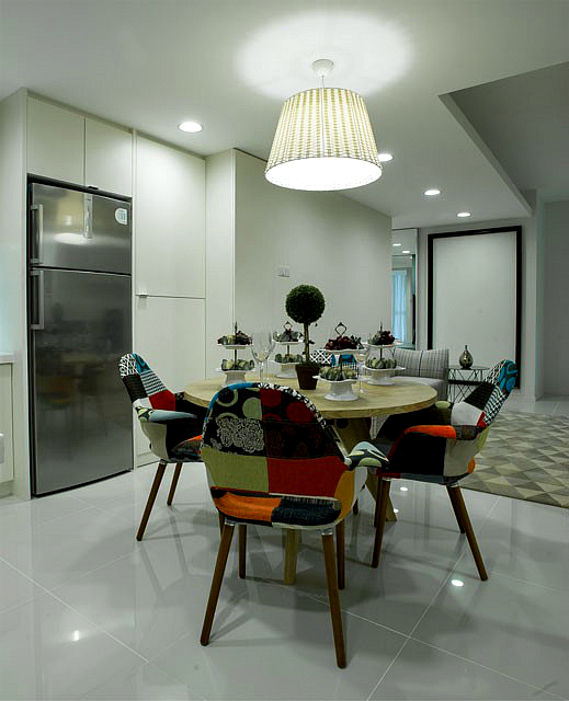 For Type C, Summer Canvas, the theme to the ID is “Freedom”. People who like to freely imagine life will find this one appealing. At 704 square feet it is simple, and clean, and (mostly) white. The out-of-place artistic dining chairs complement the whole light ID and the hidden second bedroom behind the dining area’s mirror wall fits well with the whole ‘Free your imagination!’ concept.
