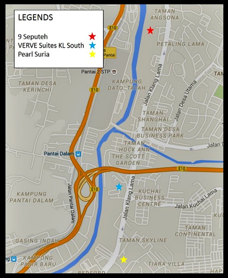Rough sketch on the location of VERVE Suites KL South, 9 Seputeh, and Pearl Suria along Old Klang Road. Pic taken from Google Maps.