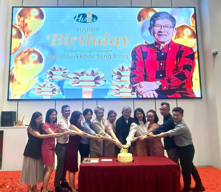 Penang, 6 August 2023 – Hunza Properties Group brought more than just double happiness in an evening filled with joyous reveals. The Founder and Executive Advisor of the Group, Dato’ Seri Khor Teng Tong, capped off his 84th birthday celebration with a special announcement to the staff before the Group launched its “Hunza DoubleUp Campaign【家】倍幸福” — a year-long programme that rewards homebuyers with prizes worth up to RM2 million.