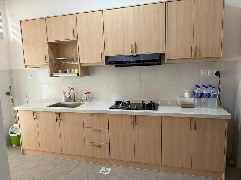 Partially furnished with air cond, kitchen cabinet,hood and hob, water heater, light and fan, curtain