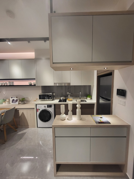 Partial furnished with kitchen cabinets, fridge, washer & dryer, air-conditioners, master room wardrobe.